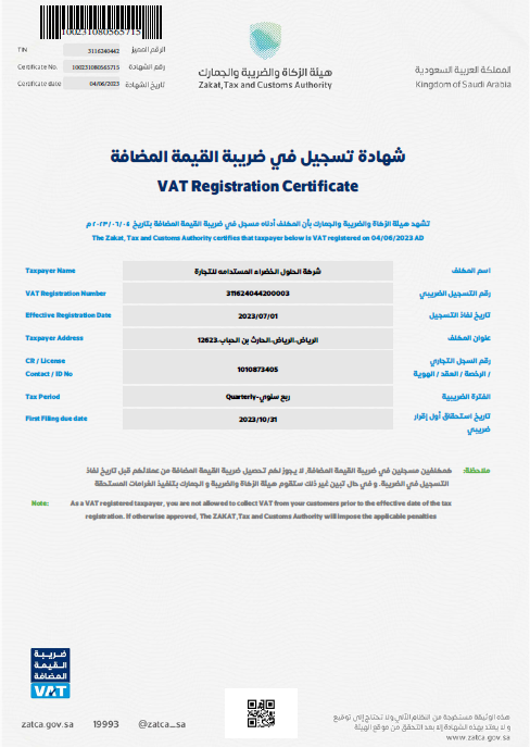 - VAT Registration Number: 311624044200003